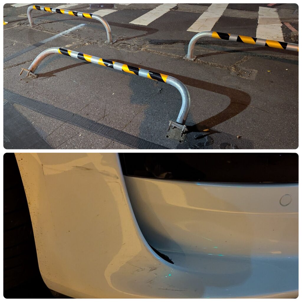 另一次就在上個月,讓它自動停車到停車格時,竟認不得地上的ㄇ字型擋桿,直接撞了過去。