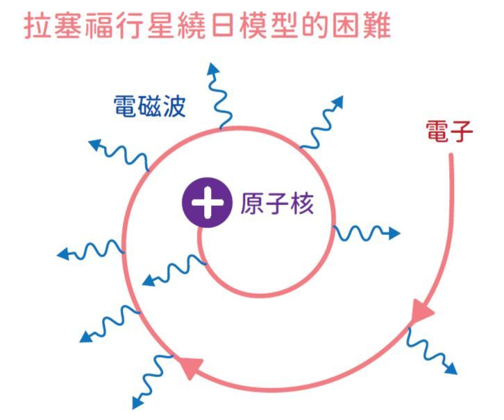 其實拉塞福原子模型有個致命缺陷:電子應該會迅速失去能量,墜入原子核中,但實際上這並未發生,可見這個模型仍有問題。1913 年,波耳想出了解決之道,他引入量子的概念,提出電子的軌域只能限定在特定能階,不會任意輻射出能量,而最低能階的電子就無法再靠近原子核。